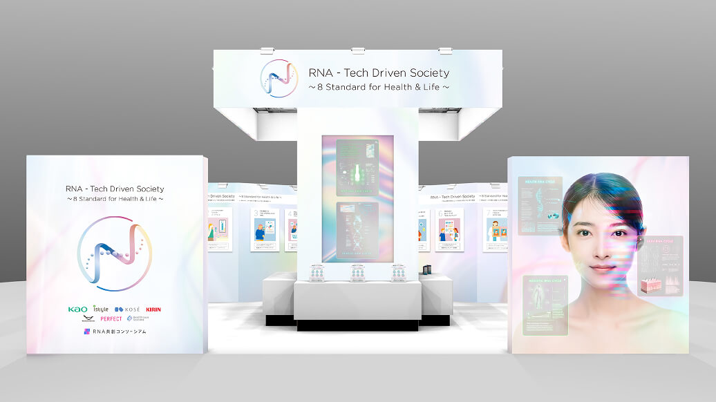 理事企業である花王株式会社(社長・長谷部佳宏)、株式会社アイスタイル(社長・遠藤宗)、共創パートナーのキリンホールディングス株式会社 (社長・南方健志)が、RNAによって今の自分の肌や体の状態を知り、さまざまな場面で利活用する現在の取り組みと未来の姿を提案します。
