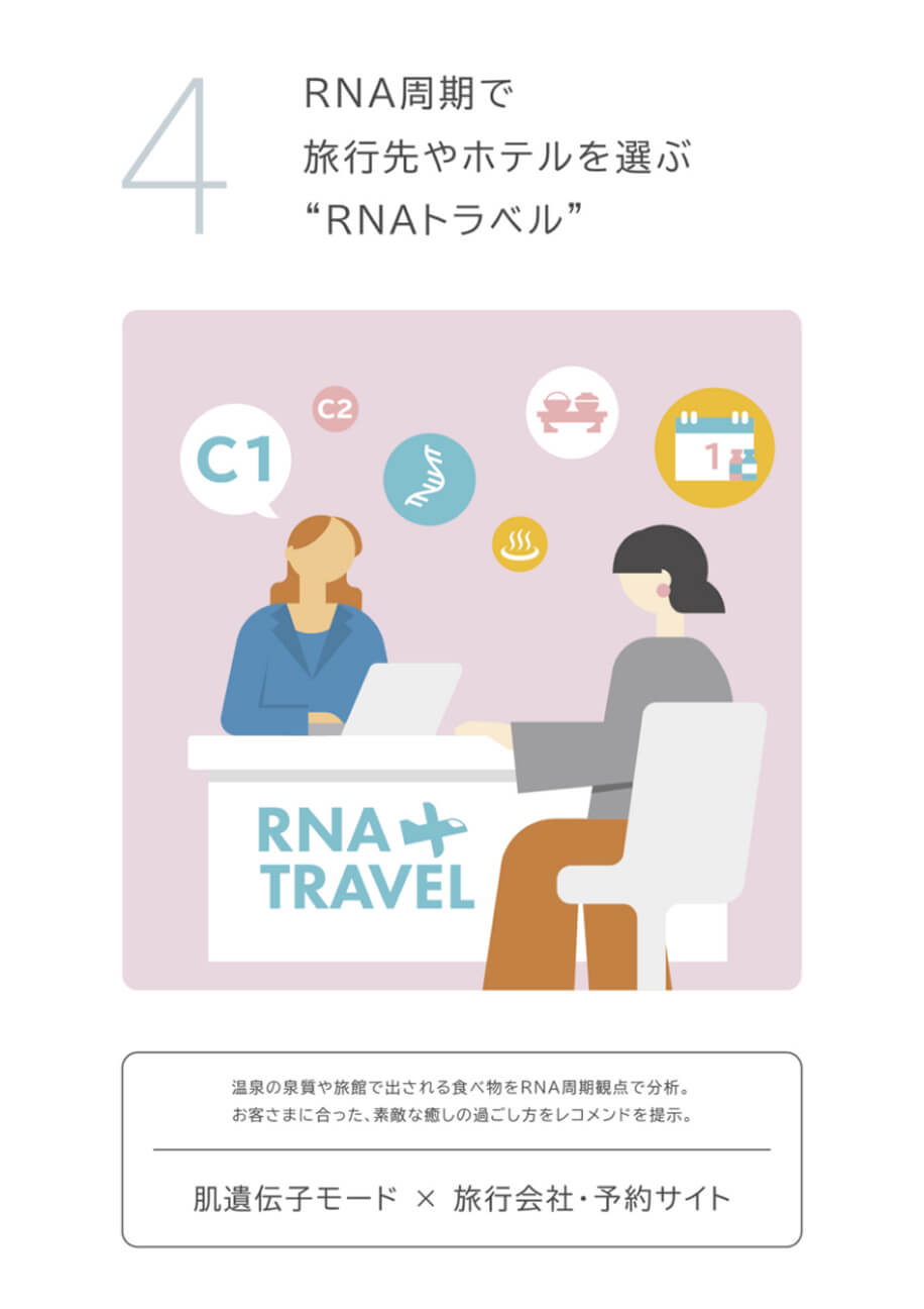 展示イメージ RNA 周期ケアで"使い時"が科学的にわかる世界にサプリやスキンケアの効果が、主観ではなくRNA レベルで可視化され今の自分に活かせる健康管理やスキンケア方法が把握できる